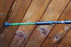 Custom marbling done in the split grip section adds special character to the rod. Definitely CUSTOM: